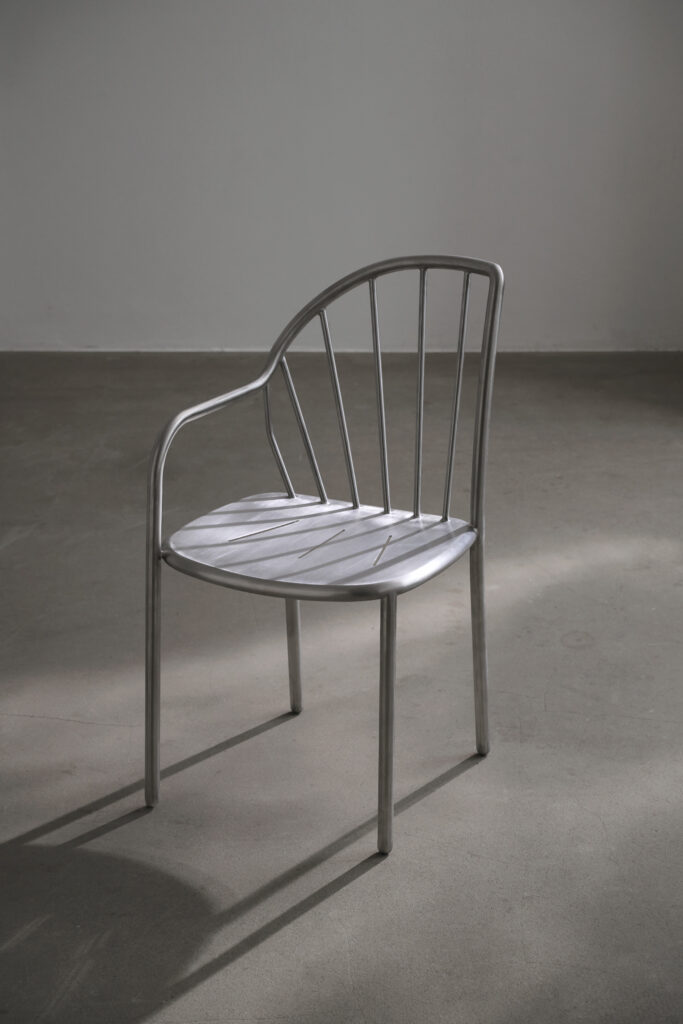 Sun Ray Chair från Solid Space Studio är en samtida tolkning av pinnstolen, där dess asymmetriska form står i fokus. Med ett tydligt nutida uttryck utforskar stolen rörelse, riktning och kontinuitet. På ECHO visas Sun Ray Chair för utomhusbruk.