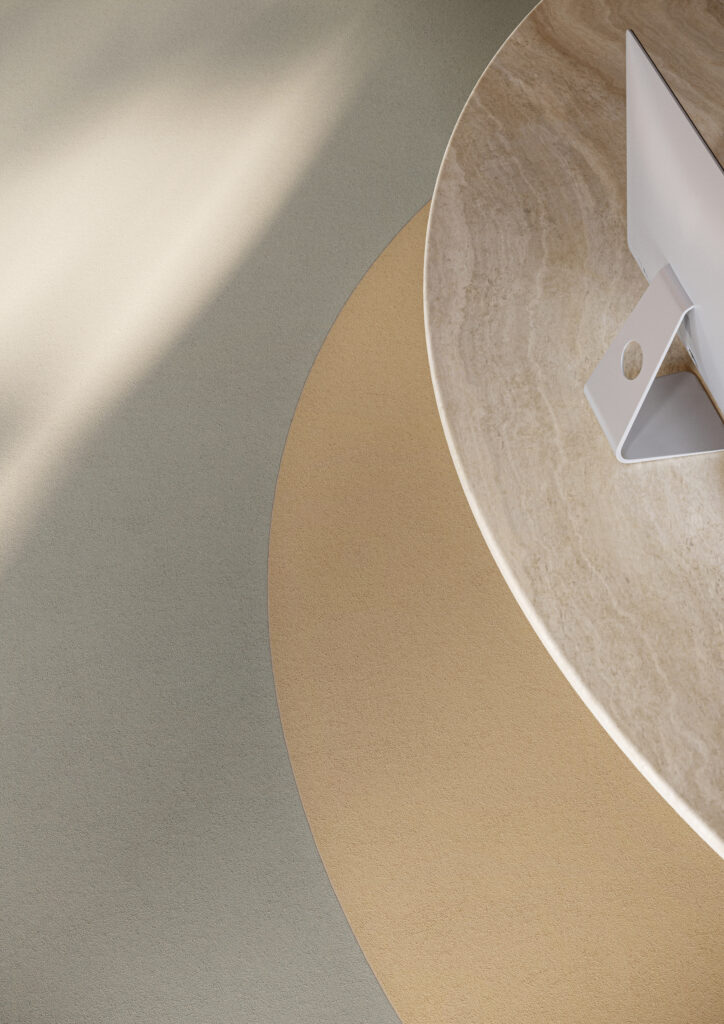 Kollektionen finns i tio jordnära kulörer som för tankarna till naturen. Färgskalan går från varm honung och mjuk terrakotta till metall och svart, och är anpassad för att harmoniera med Tarketts befintliga Etrusco-golv och LinoWall-vägglösningar. Resultatet blir en sammanhållen och rofylld miljö.